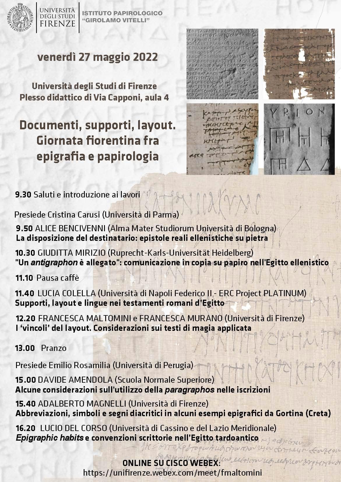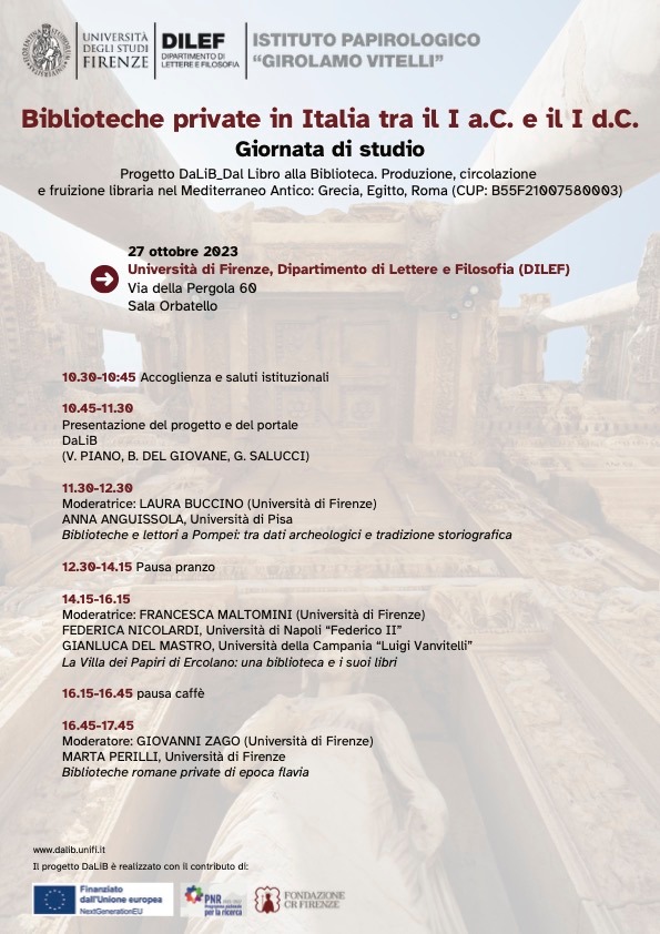 | Organizzatori | Istituto Papirologico “G. Vitelli” |